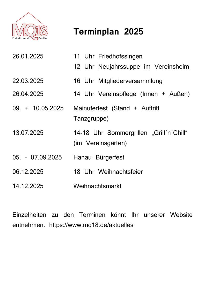 Herzlich willkommen auf der Homepage des MQ18 - ein Verein mit Chor und Tanzgruppe!